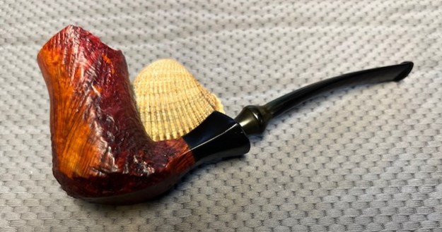 This newly restemmed Frasorteret Hand Made in Denmark Freehand is a great looking pipe with some interesting shaping around the sides of the bowl and vulcanite shank extension. You can easily see the handiwork of Preben Holm in the shaping of the pipe. The beautiful grain around the smooth portions and sandblast on the other portions of the bowl is quite stunning and works well with both the shape and the polished vulcanite shank extension and the fancy vulcanite saddle stem. I put the new stem back on the bowl and carefully buffed the pipe with Blue Diamond on the buffing wheel using a light touch on the briar. I gave the bowl and the stem multiple coats of carnauba wax on the wheel and followed by buffing the pipe with a clean buffing pad. I hand buffed the pipe with a microfiber cloth to deepen the shine. The finished Preben Holm Hand Made Frasortert Freehand fits nicely in the hand and feels great. Give the finished pipe a look in the photos below. The dimensions of the pipe are Length: 6 inches, Height: 2 ¼ inches, Outside diameter of the bowl: 1 ¾ inches, Chamber diameter: 1 inch. The weight of the pipe is 49 grams/1.69 ounces. I will be putting it on the rebornpipes store in the Danish Pipemakers Section shortly. If you wish to add this interesting pipe to your rack it is a great addition. Send me a message or an email. Thanks for reading this blog and my reflections on the pipe while I worked on it. I appreciate your support and time!