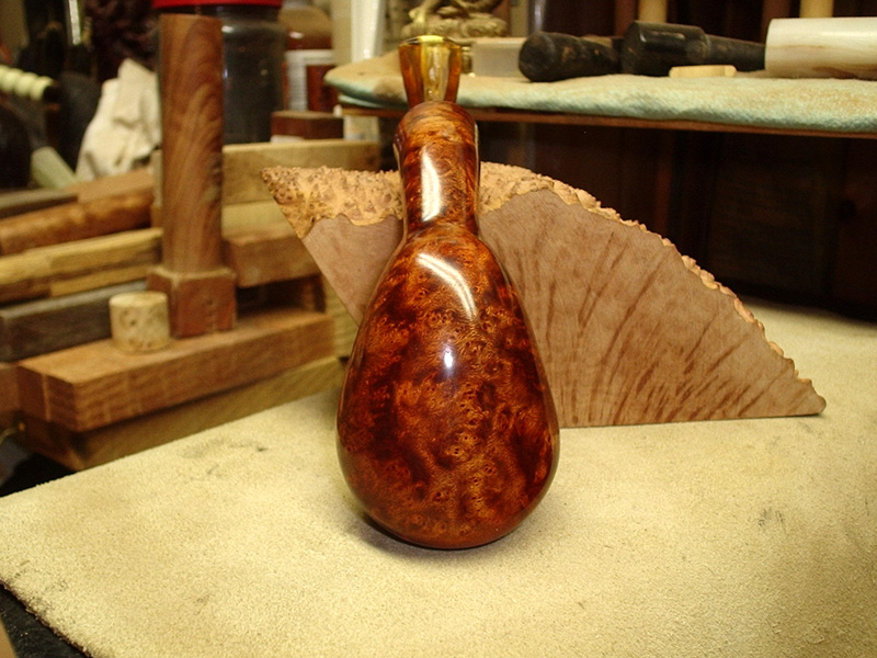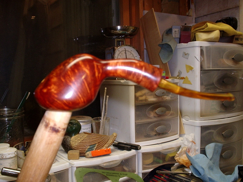 I wrote this review several years ago now and post it here as I wrote it then. Dan still makes great pipes and they are reasonable in price. Dan is one of the makers that I have learned much from in terms of staining and stem work. He has always been available to me when I have a question or need a tool. We have spent many hours communicating across the continent via Skype and for that I am thankful. I have two of Dan’s pipes and love them both.