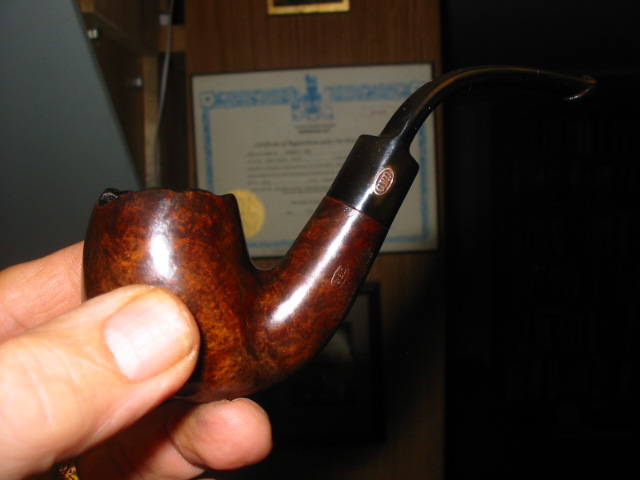 International – France and England made: medium brown smooth, carved top rim, rim stained black. In addition to the pipe line and shape information stamped on the pipe, GBD also had codes for plus sized pipes. These codes in ascending order of size were Conquest, Collector, Colossus.