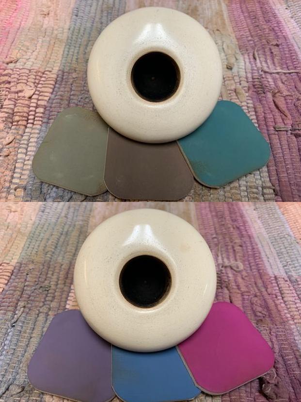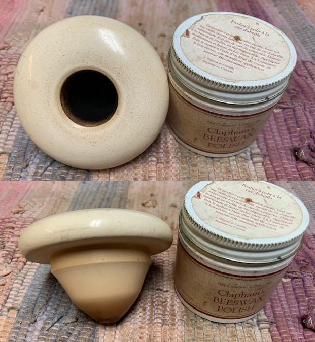 I worked some Before & After Restoration Balm into the surface of the gourd with my fingertips to clean, enliven and protect the gourd. I let the balm sit for 15 minutes and then buffed with a cotton cloth to raise the shine. The photos show the bowl at this point in the restoration process.