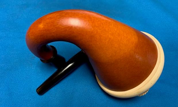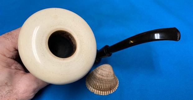 The length of the extension tube is 8 ½ inches. I took a few photos of the pipe next to the extension to give a sense of the size. I also took photos of the extension tube with the stem in place to show the look of it. Finally the last photos give a sense of the fully extended BBB Silver Capped Calabash with the bone extension. With it installed on the pipe the length of the pipe is 13 inches. Height and other measurements remain as noted above.