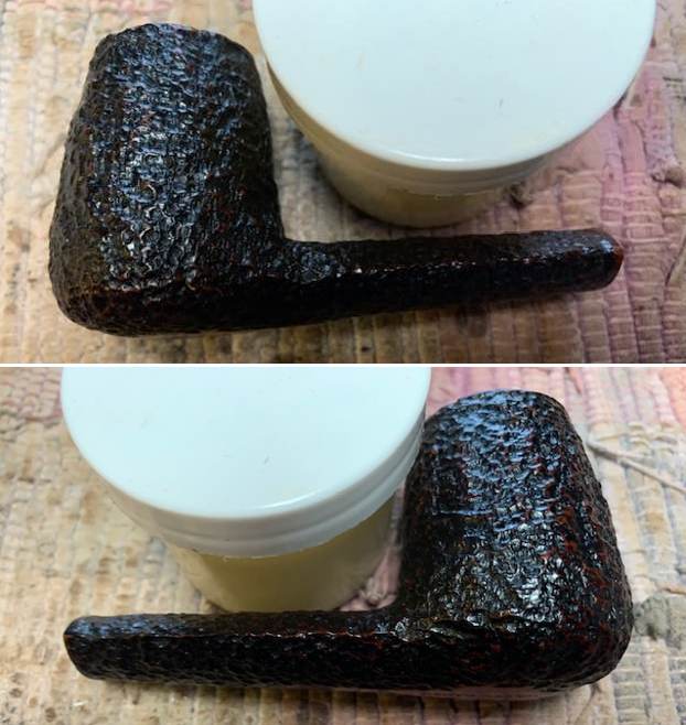 As usual at this point in the restoration process I am excited to be on the homestretch. I look forward to the final look when it is put back together, polished and waxed. I put the Gulden Dansk Oval Long Shank Brandy back together. I polished the bowl and stem with Blue Diamond to polish out the scratches in the briar and the vulcanite. I gave the bowl and the stem multiple coats of carnauba wax. I buffed the pipe with a clean buffing pad to raise the shine. I hand buffed it with a microfiber cloth to deepen the shine. The pipe polished up pretty nicely. The grain really pops with the wax and polish. The shiny black vulcanite stem is a beautiful contrast to the dark browns of the bowl and shank. This rusticated Gulden Dansk Oval Long Shank Brandy was another fun pipe to work on. It really is a quite stunning piece of briar whose shape follows the flow of the grain on the briar. The pipe is comfortable pipe to hold in the hand. The finished pipe is shown in the photos below. The dimensions of the pipe are Length: 5 ¾ inches, Height: 2 inches, Outside diameter of the bowl: 1 ¼ inches, Chamber diameter: ¾ of an inch. The weight of the pipe is 1.80 ounces/ 51 grams. I will be sending this beautiful Gulden Dansk back to the pipeman who dropped it off. Thanks for reading my reflections on the pipe while I working on it.