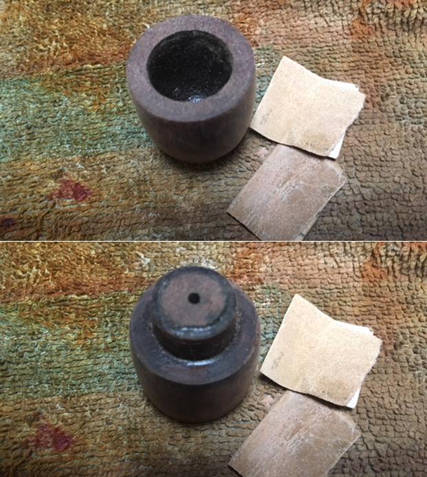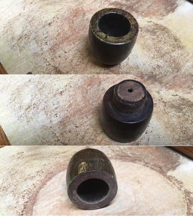 I removed the bowl from the base and took photos of the parts. The threaded bottom of the bowl was in good condition. There some staining on the face of the bowl and on the bottom of the portion of the bowl that screwed into the base.