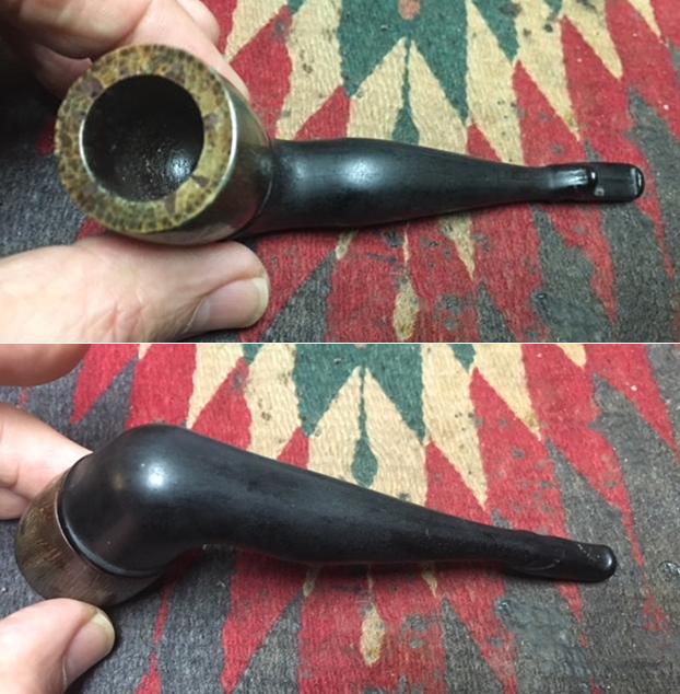 Jeff had cleaned up the pipe with his usual penchant for thoroughness. He reamed the bowl with a PipNet Pipe Reamer and cleaned up the remnants with a Savinelli Fitsall Pipe Knife. He scrubbed the bowl with undiluted Murphy’s Oil Soap with a tooth brush. He rinsed it under running warm water to remove the soap and grime. He cleaned out the inside of the shank and the airway in the stem with alcohol, cotton swabs and pipe cleaners. He scrubbed the base with the Oil Soap and rinsed it off with warm water. The pipe looked very clean when I received it. The varnish coat on the bowl was still spotty and would need to go but otherwise it was quite nice. I took photos of the pipe once I received it.