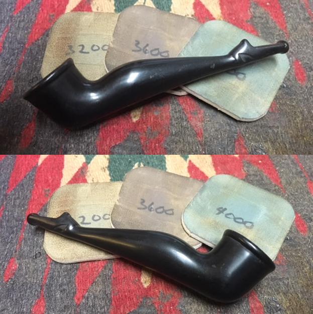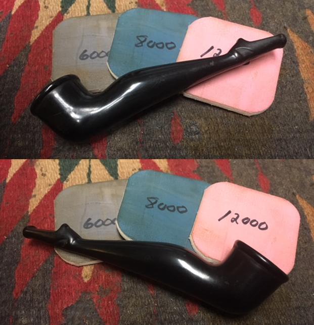 It was in very good condition so I polished the gutta-percha stem portion of the base with micromesh sanding pads – 1500-12000 grit pads. I wiped it down with Obsidian Oil after each sanding pad. I used Before & After Pipe Polish – both Fine and Extra Fine to further polish the stem.
