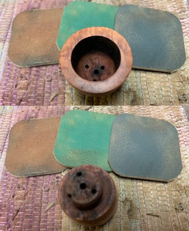 I polished the bowl and the rim top and sides with micromesh sanding pads – wet sanding with 1500-12000 grit pads and wiping it down after each pad with a cloth.