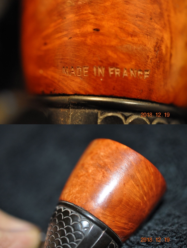 Jeff took photos of the sides and heel of the bowl to give a picture of what the briar around the pipe looked like. There is some stunning grain under the varnish coat. The first photo shows the only stamping on the pipe – MADE IN FRANCE.
