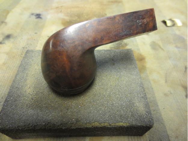 I set the bowl aside and turned to the stem. I touched up the faint H stamping on the topside of the stem with White Acrylic Fingernail Polish. Once it dried I scraped it off and polished that area with a 1500 grit micromesh sanding pad. It is quite readable.