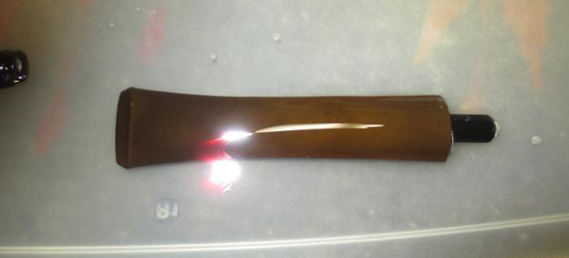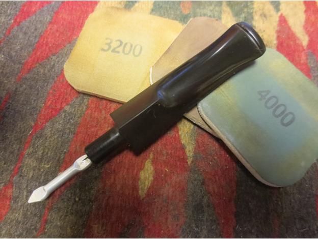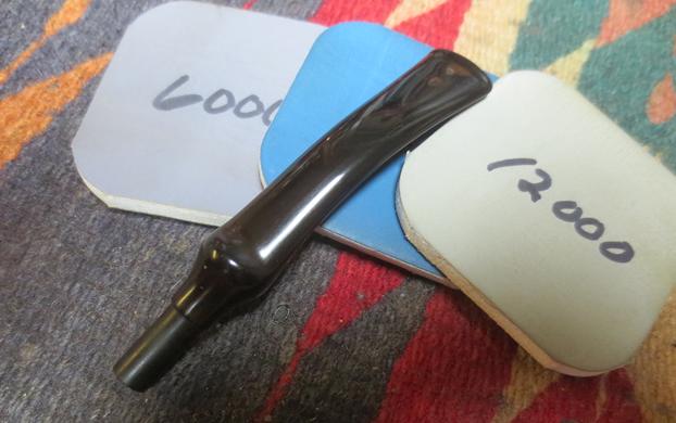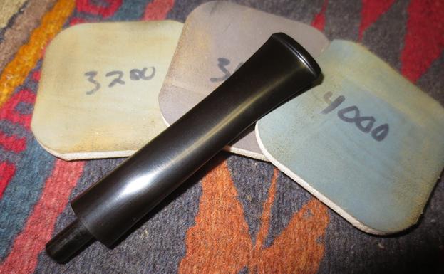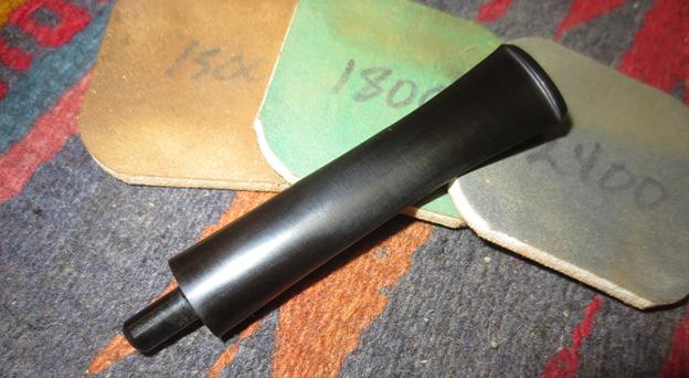 I polished the stem with micromesh sanding pads – 1500-12000 grit sanding pads and water to wet sand the stem. I wiped it down after each sanding pad with Obsidian Oil on a cotton rag after each sanding pads. I find it does two things – first it gives some protection to the stem from buildup and second it give the sanding pads bite in the polishing process.
