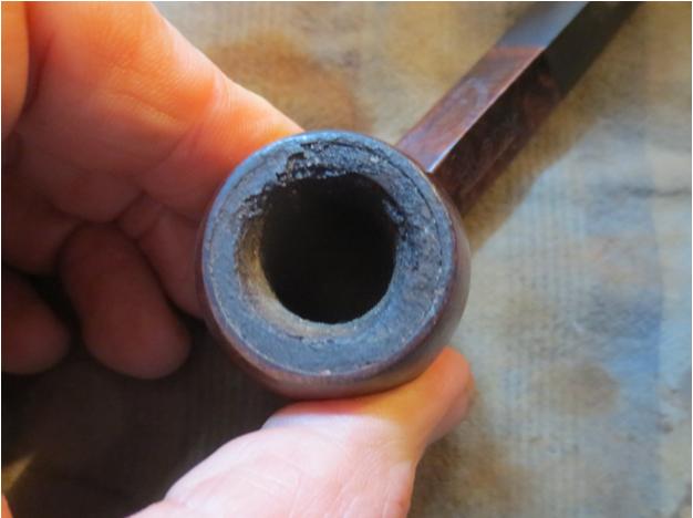 Jeff took close up photos so that I could have a clearer picture of the condition of the bowl, rim edges and top. The rim top photos confirm my assessment above. The cake in the bowl is thick – covering the walls of the bowl. The rim top has thick lava coat overflowing and covering the inner edge. It is heavier on the right front and toward the back of the bowl. It is hard to know the condition of the inner edge in this condition. This is what I look for when assessing a pipe. I look forward to viewing it in person after the clean up work.