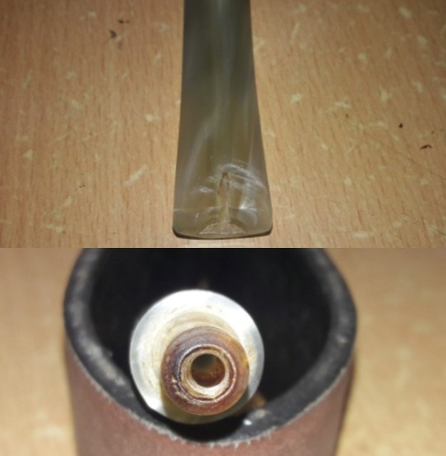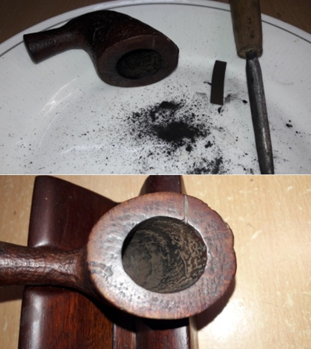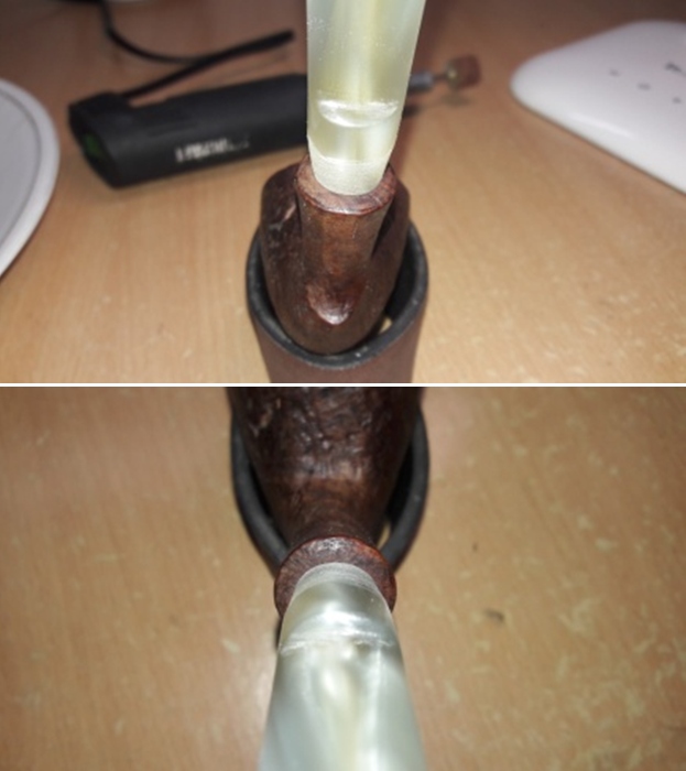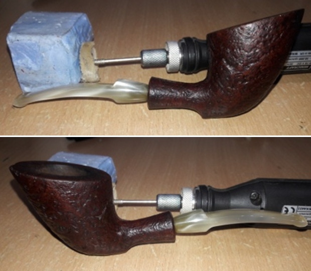 - The vulcanite taper stem looks better though the light tooth marks and chatter on both sides are visible.