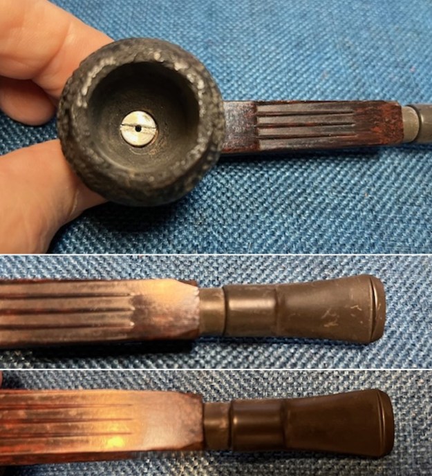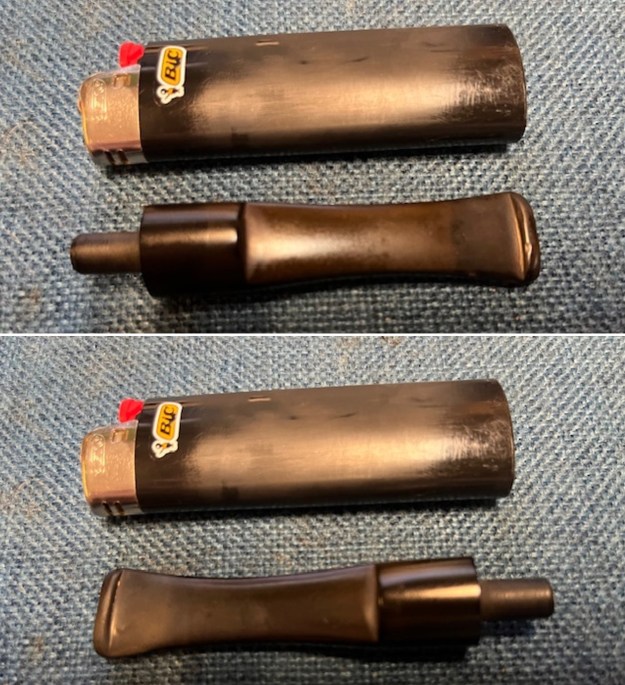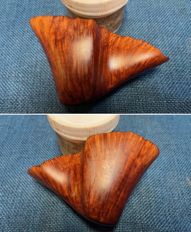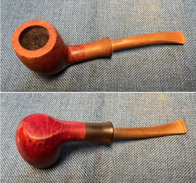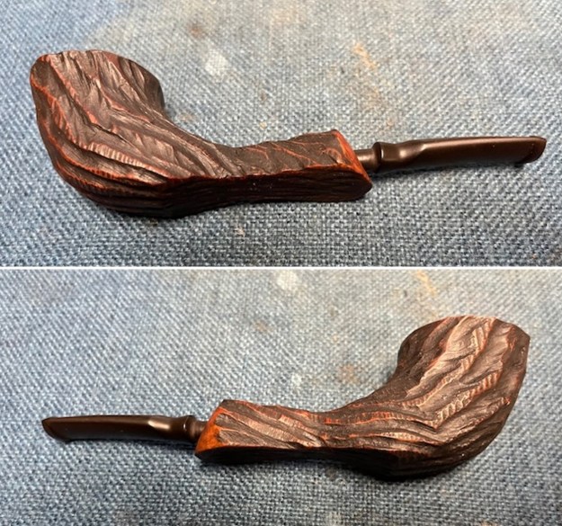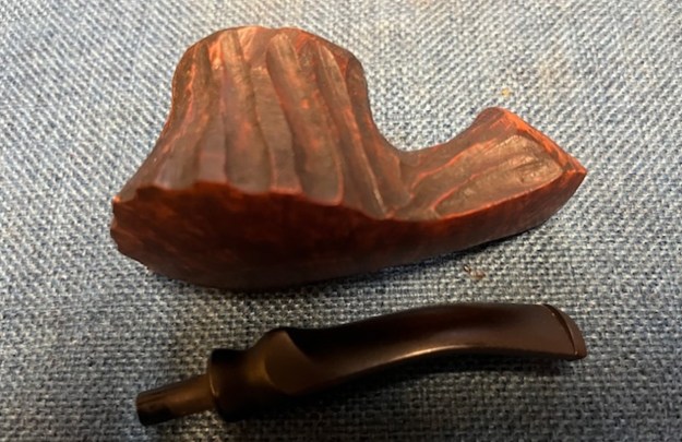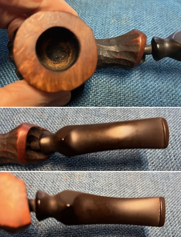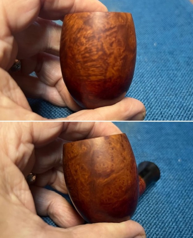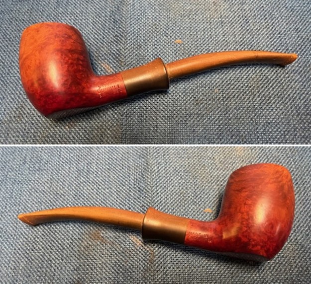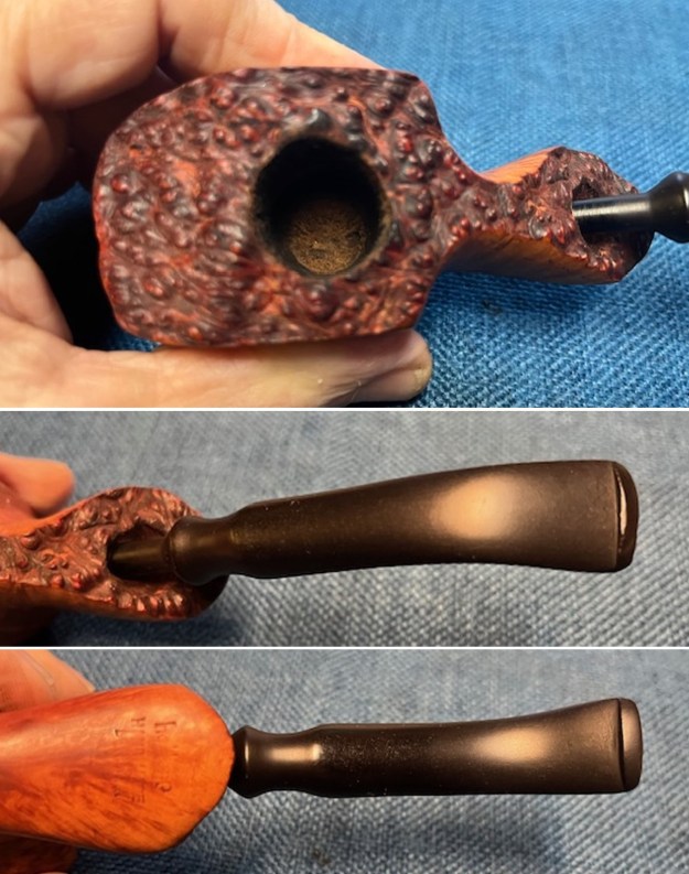 The stamping on the heel of the bowl is clear and readable as noted above. I took a photo of the pipe with the stem removed to give a sense of the proportions of the pipe. It is a real beauty. Interestingly, there was a clean foil inner tube in the tenon.