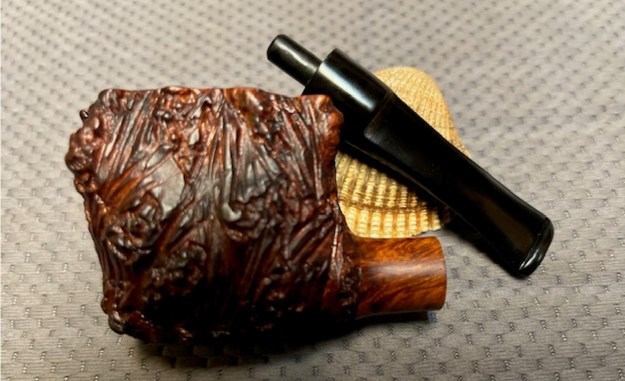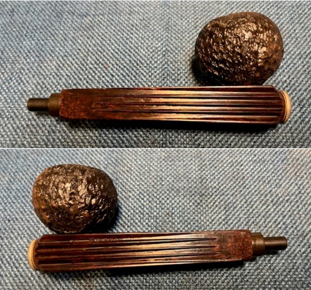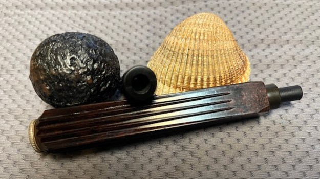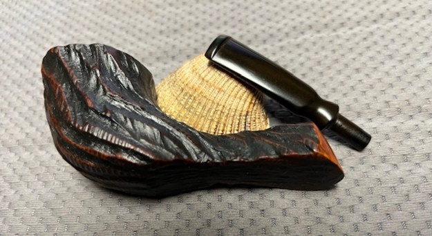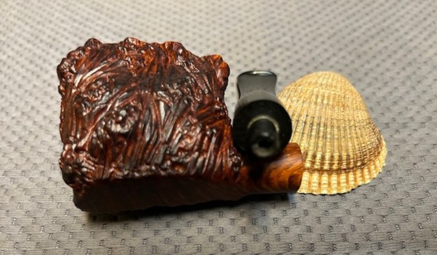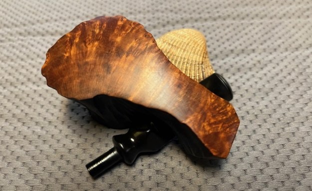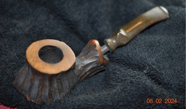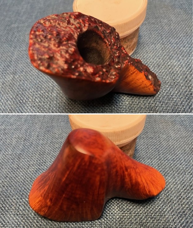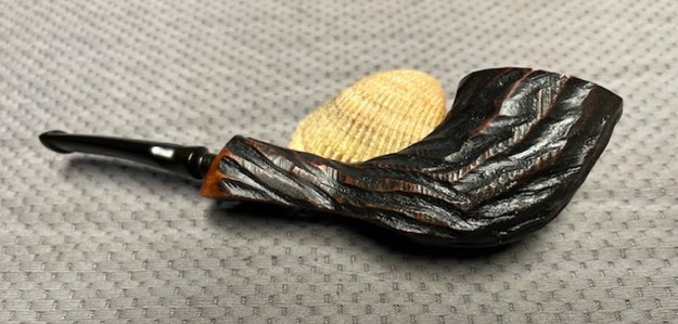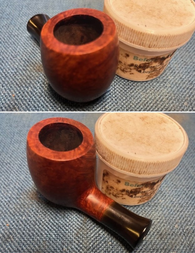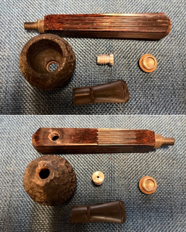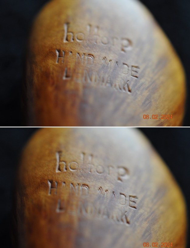 The stamping on the heel of the bowl is clear and readable as noted above. I took a photo of the pipe with the stem removed to give a sense of the proportions of the pipe. It is a real beauty. Interestingly, there was a clean foil inner tube in the tenon.