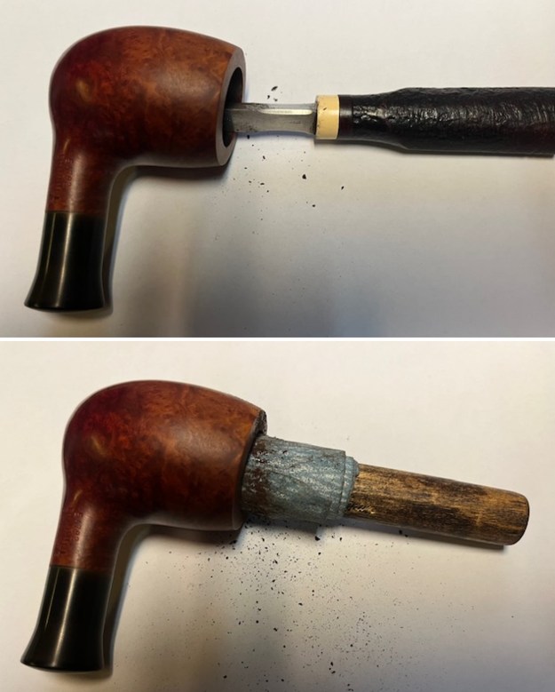 I cleaned out the inside of the shank and the airway in the stem with alcohol, cotton swabs and both bristle and regular pipe cleaners.