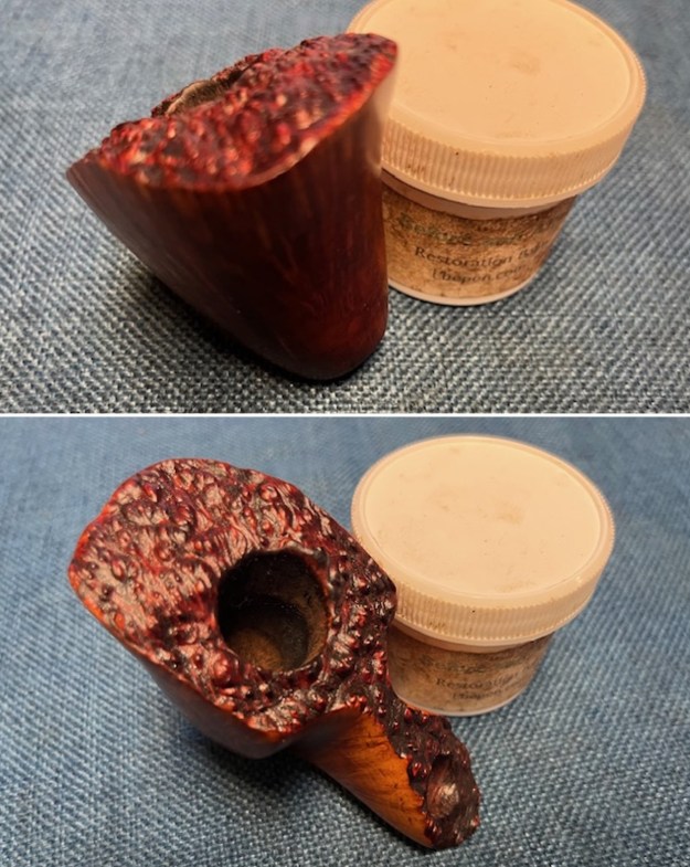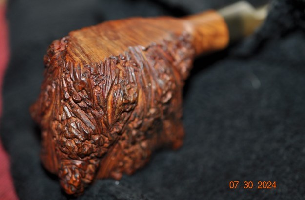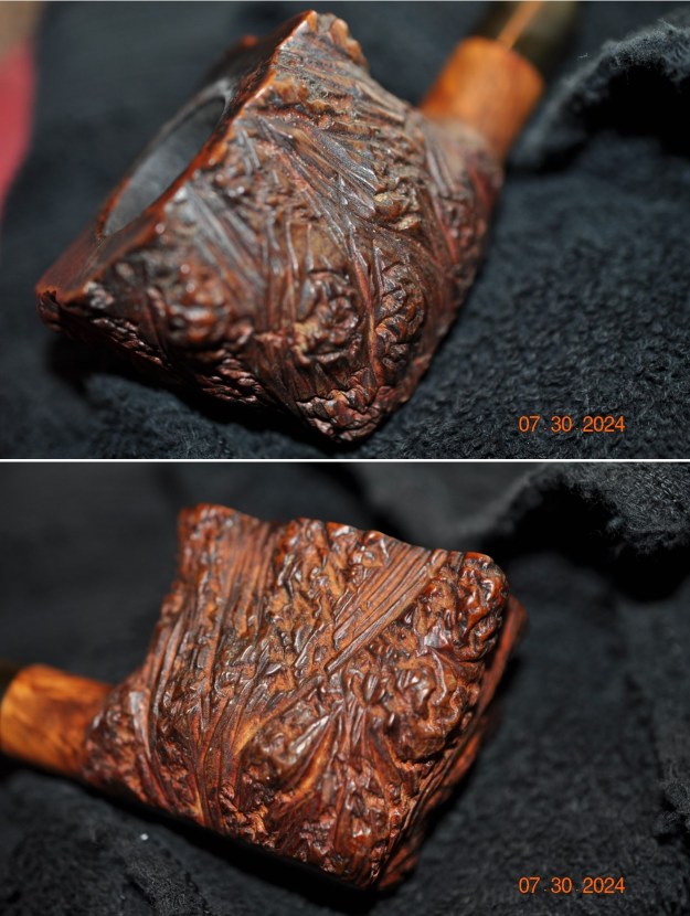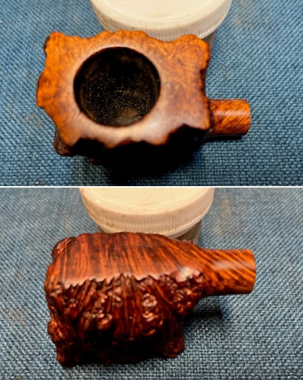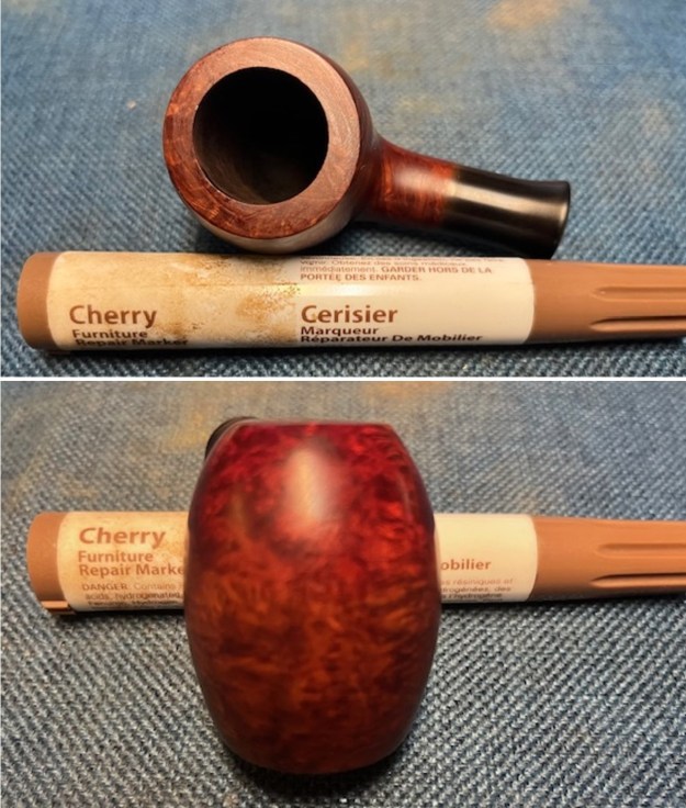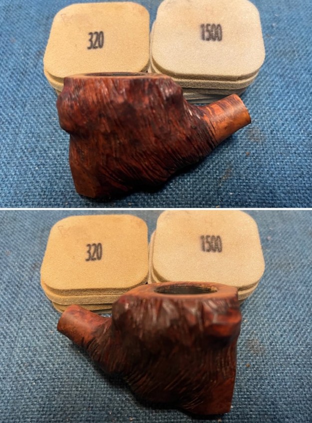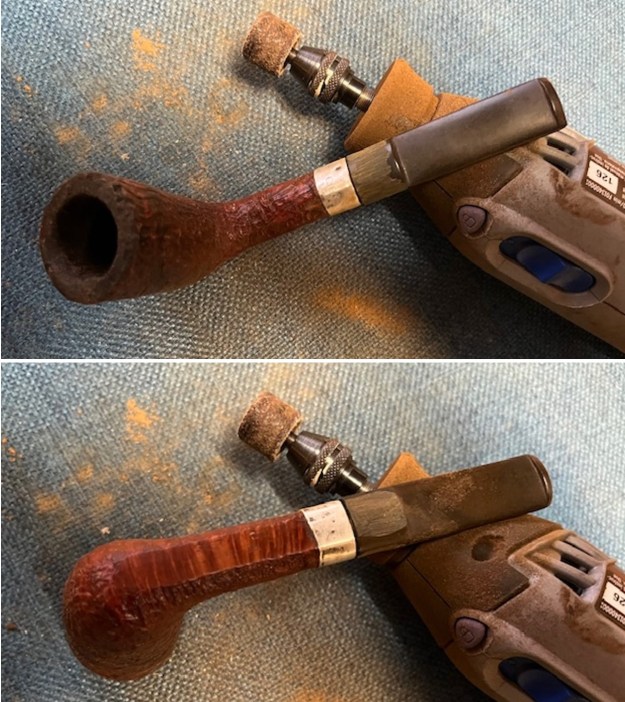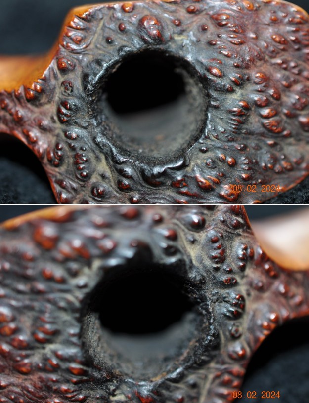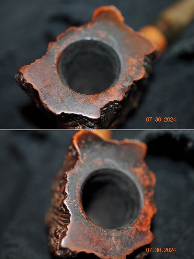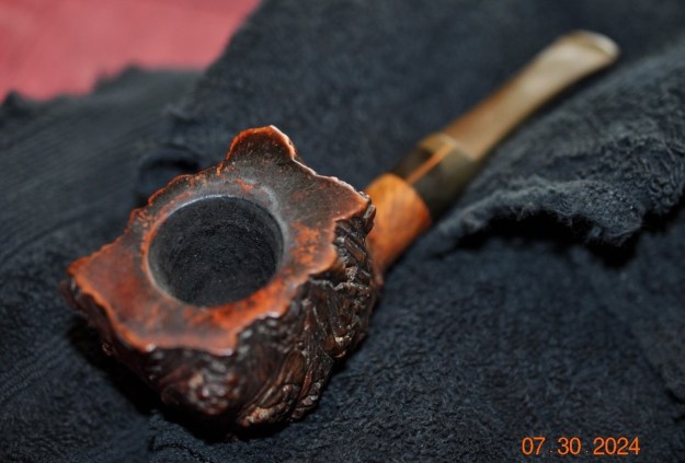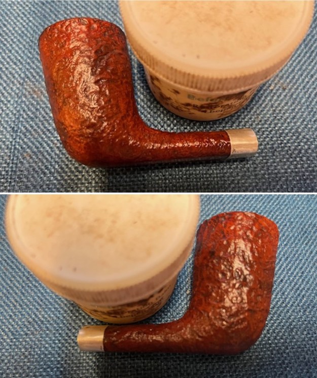 I scrubbed the bowl and shank with a tooth brush and some undiluted Murphy’s Oil Soap. I rinsed it off with warm water to remove the dust and soap from the finish. I dried it off with a soft cloth. The rim top was still darkened in the grooves of the sandblast.