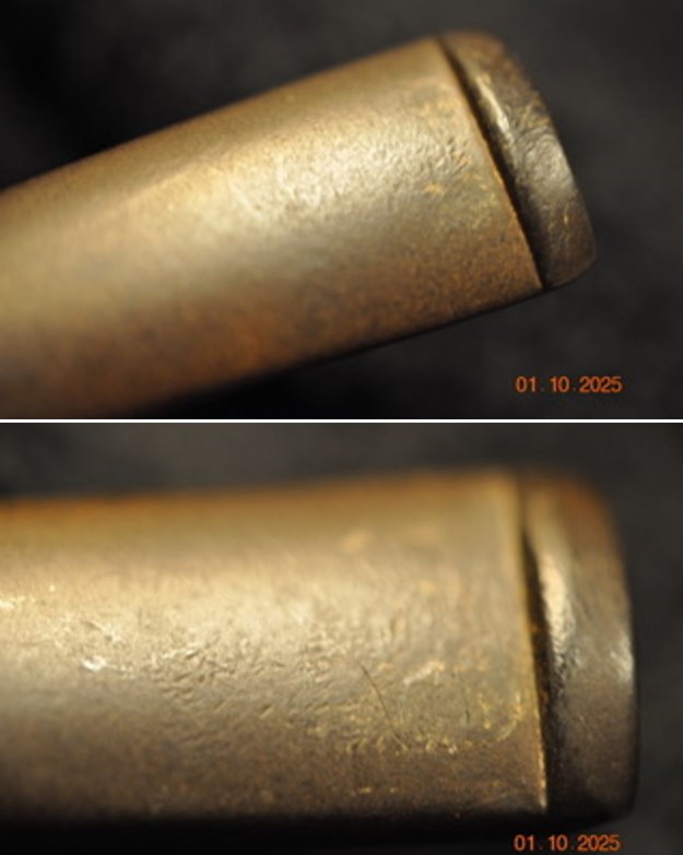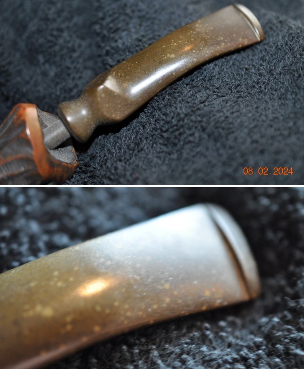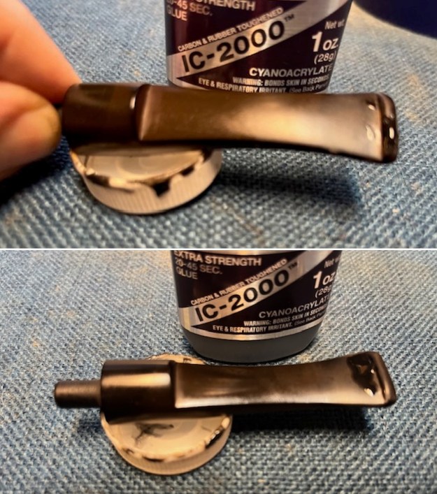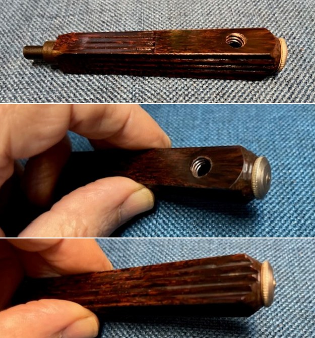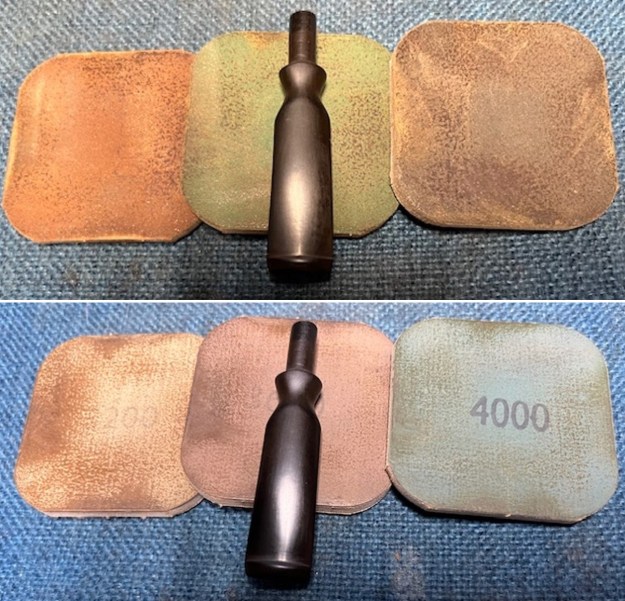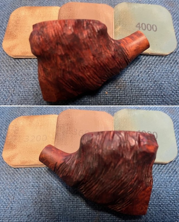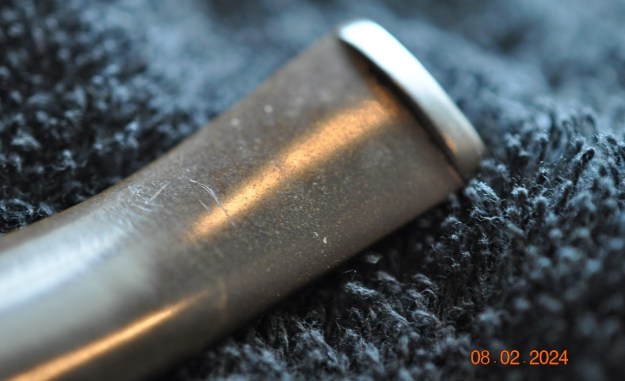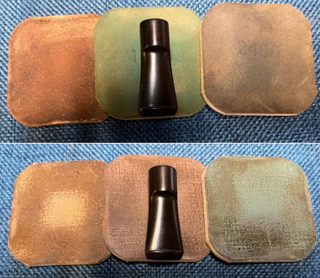 I sanded the stem and tenon surface with 320-3500 grit 2×2 inch pads. I wiped the stem down with an Obsidian Oil cloth after each sanding pad.