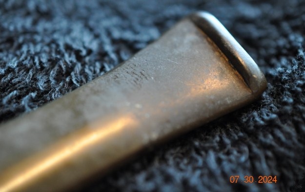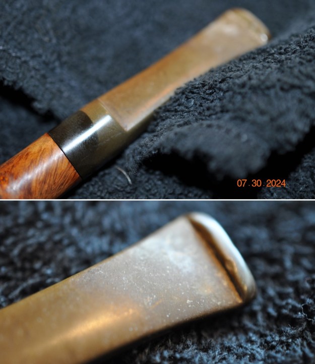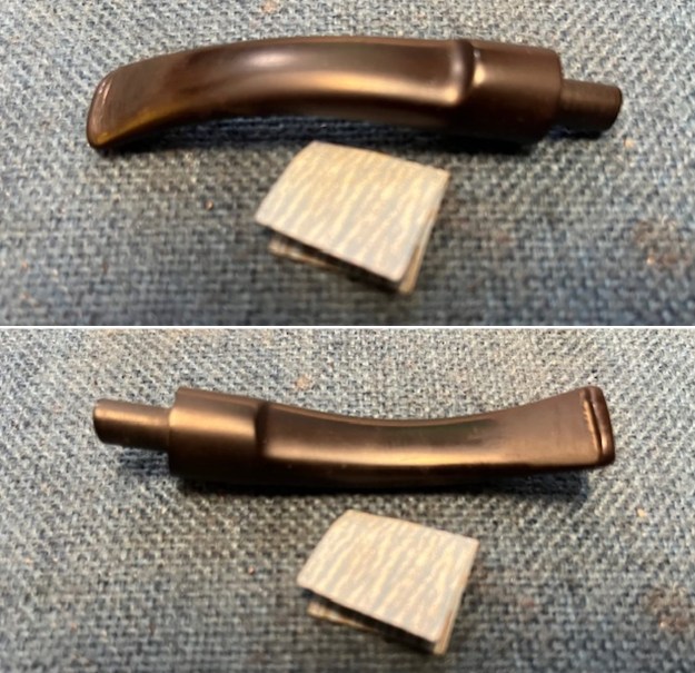 I set the bowl aside and worked on the stem. The stem was stamped on the underside and read TRADE MARK [over] CASTELLO [over] 7. I sanded the oxidation and the tooth marks and chatter with 220 grit sandpaper. I was able to remove all of the light tooth damage on the stem and the majority of the oxidation.
