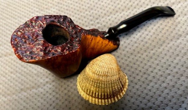 …All carved Castello pipes are graded by the number of K’s that are stamped on each piece and are K-graded by SIZE. 1K is the smallest and fairly rare, 2K is small to medium, with 3K or 4K being the most common and ranges from medium to medium large. Large pieces are stamped “G” for giant and extra-large pieces are stamped “GG” for double giant. In addition to the number of K’s on a carved Sea Rock piece the shape number is almost always added. As a rule a Sea Rock Castello is stained Black, although recently there have been quite a few coming in stained deep brown and still stamped “Sea Rock”. American Logo’d Sea Rocks are all priced the same to the consumer, although most are 2 or 3 K’ed models. G/GG models are charged at a higher price on American pieces and are basically the same as their European counterparts.