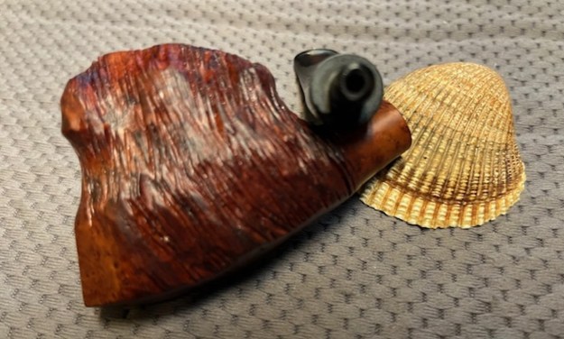 This beautiful Castello Old Antiquari Rusticated Flumed Top KK 32 Short Canadian with a taper acrylic stem looks amazing after the work on it. The briar is clean and the deep rustication really came alive. The rich brown stains gave the finish a sense of depth with the polishing and waxing. The flumed black rim top and edges were a great contrast. The finish really popped. I put the stem back on the bowl and buffed the pipe with Blue Diamond on the buffing wheel using a light touch on the briar. I gave the bowl and the stem multiple coats of carnauba wax on the buffing wheel. I buffed the pipe with a clean buffing pad to raise the shine. I hand buffed the pipe with a microfiber cloth to deepen the shine. The finished Castello Old Antiquari Rusticated KK 32 Canadian really is a beauty and feels great in the hand and looks very good. Give the finished pipe a look in the photos below. The dimensions of the pipe are Length: 6 inches, Height: 2 inches, Outside diameter of the bowl: 1 1/2 inches, Chamber diameter: 7/8 of an inch. The weight of the pipe is 47 grams/1.66 ounces. I will soon be putting this pipe on the rebornpipes store in the Italian Pipe Makers section. It should make a great smoker that the next steward will enjoy. Thanks for reading this blog and my reflections on the pipe while I worked on it. It was a fun one to work on.