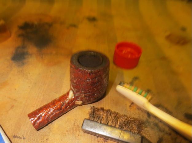 I took a photo of the stamping on the topside of the shank. It is readable as noted above. I took the stem out of the shank and took a photo of the overall look of the pipe.