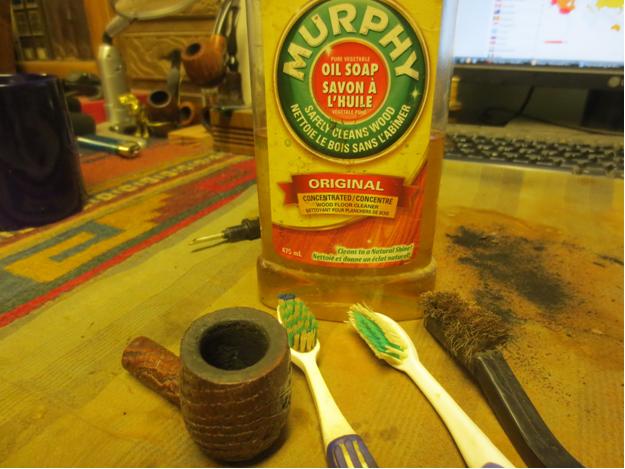 With that information, I turned to work on the pipe itself. Jeff had thoroughly cleaned up the pipe. He reamed the pipe with a PipNet Pipe Reamer and cleaned up the remnants with a Savinelli Fitsall Pipe Knife. He scrubbed the bowl with undiluted Murphy’s Oil Soap with a tooth brush. He rinsed it under running warm water to remove the soap and grime. He cleaned out the inside of the shank and the airway in the stem with alcohol, cotton swabs and pipe cleaners. He scrubbed the exterior of the stem with Soft Scrub to remove as much of the oxidation as possible. He soaked it in Before & After Pipe Stem Deoxidizer and rinsed it with warm water. The acrylic stem was clean but had tooth marks and chatter on both sides ahead of the button. There was an Jobey Brass Oval logo inlaid on the left side of the stem. I took photos of the pipe before I started my work on it. It was an amazing looking pipe.