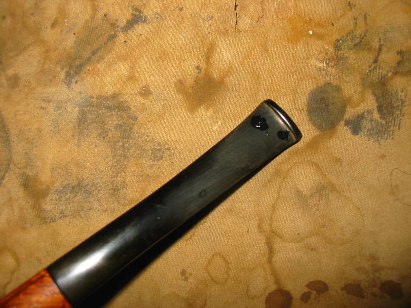 I took close up photos of the bowl, rim top and stem to show how clean the pipe was. The bowl was clean and the rim top and the inner edge look beautiful. The stem was clean and had light tooth marks and chatter on both sides. You can also see the poor repair on the underside of the stem.