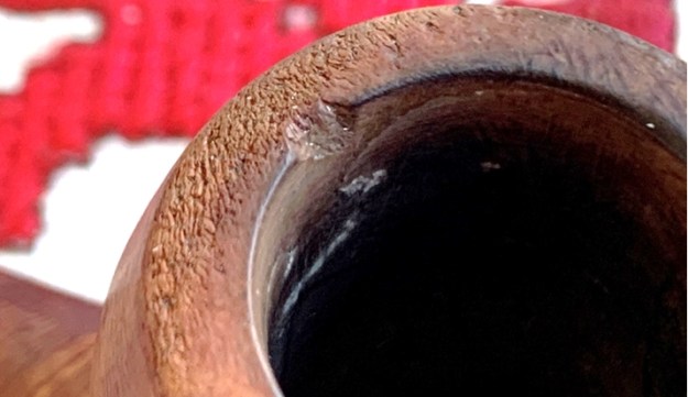 The rim has evidences of Sam’s penchant for knocking the stummel on the back side of the rim. It is worn and tapers away from the chamber.