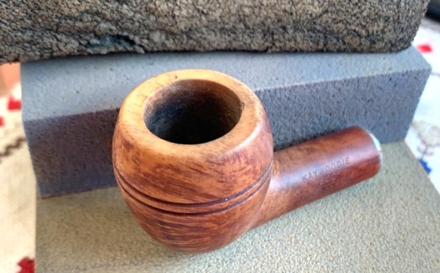 Based upon the information of this thread, the Natural Burl Apple before me dates from 1957 to 1962, when they were featured in Kaywoodie catalogs. I looked for a catalog during this period online, but unfortunately, I was unable to find one. The rusticated or carved surface theoretically provides a cooler feeling bowl. This pipe fits Sam’s low budget approach to his pipes. When the Natural Burl Apple first hit the market, it was in a working man’s modest budget range, $4! I’m hopeful that after I’ve completed working on Paw’s vintage Kaywoodie it will look like a million bucks!