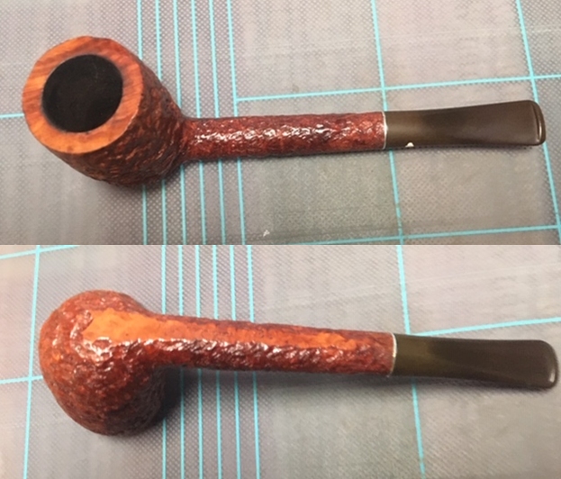Natural Burls are in the catalogs from 1957 to 1962. They were $4.00 when they first came out and $5.00 by the time they were discontinued. They were basically a stained version of the Coral White Briar, which also debuted in 1957. The overall rough texture was described in the catalogs as having a rough texture like the outside of the burl. The rough texture in theory would create more surface area for a cooler feeling bowl. Carving of this type was done on bowls of less desirable grain and with excessive surface imperfections. On the lower side of the quality scale, Natural Burls would have had the white cloverleaf. There may have been the occasional higher grade pipe that was downgraded during production and hence would have the round logo, but I think you’ll mostly see them with the white logos.