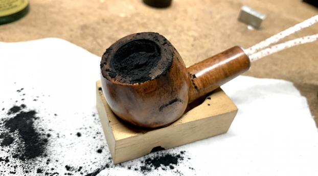 I took the pipe apart to see how bad it was. It was extremely dirty, and the finish was badly damaged. There were burn marks and lava all over the rim and shank.