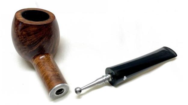 To correct this problem and to bring the stem back to an accurate orientation, a Bic lighter is used to heat the nickel 4-hole stinger. Since the stinger is gripped by the vulcanite of the stem, the goal is to warm the stinger so that the vulcanite gripping the stinger heats and loosens its grip allowing the stinger to rotate.