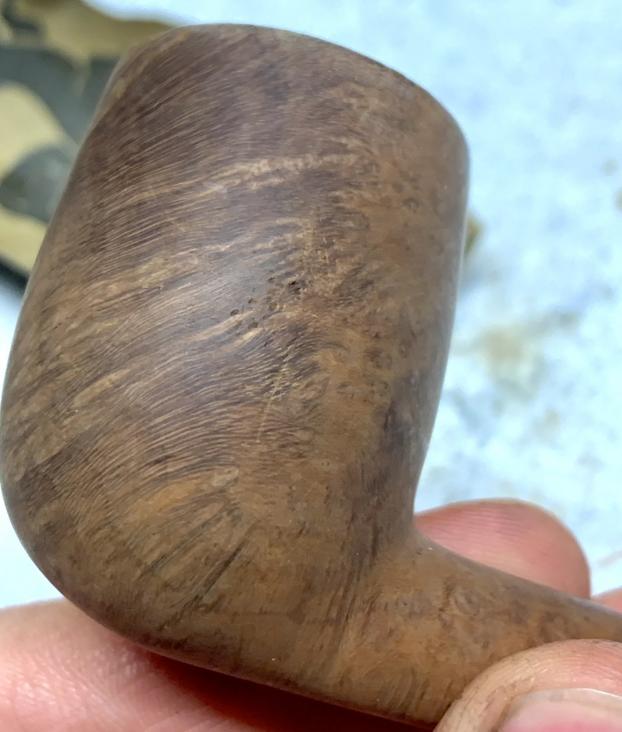 Based upon the information of this thread, the Natural Burl Apple before me dates from 1957 to 1962, when they were featured in Kaywoodie catalogs. I looked for a catalog during this period online, but unfortunately, I was unable to find one.  The rusticated or carved surface theoretically provides a cooler feeling bowl.  This pipe fits Sam’s low budget approach to his pipes.  When the Natural Burl Apple first hit the market, it was in a working man’s modest budget range, $4!  I’m hopeful that after I’ve completed working on Paw’s vintage Kaywoodie it will look like a million bucks!