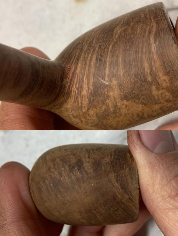 The cleaning has totally removed what was left of the old finish – not unexpected. The cleaning reveals some white fills on the right side of the stummel which are fully embraced in the craggy landscape cover and seem to be solid after testing them with a sharp dental probe.