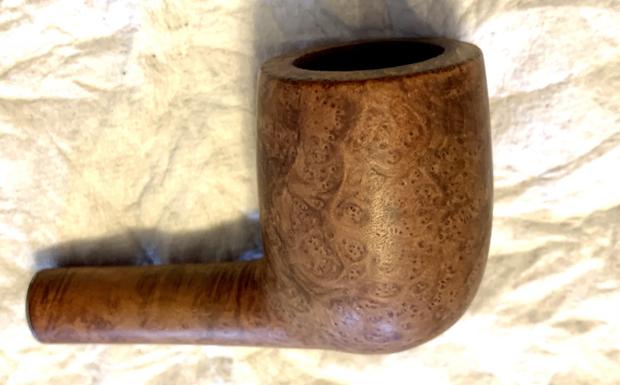 Natural Burls are in the catalogs from 1957 to 1962. They were $4.00 when they first came out and $5.00 by the time they were discontinued.  They were basically a stained version of the Coral White Briar, which also debuted in 1957.  The overall rough texture was described in the catalogs as having a rough texture like the outside of the burl.  The rough texture in theory would create more surface area for a cooler feeling bowl.  Carving of this type was done on bowls of less desirable grain and with excessive surface imperfections.  On the lower side of the quality scale, Natural Burls would have had the white cloverleaf.  There may have been the occasional higher grade pipe that was downgraded during production and hence would have the round logo, but I think you’ll mostly see them with the white logos.