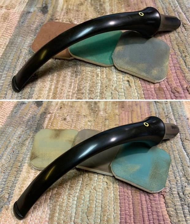 I cleaned the stem surface with isopropyl alcohol on a cotton swab and followed it with a scrub using Murphy’s Oil soap and cotton swab. I also smooth the sharp edges of the ferrule with a folded piece of 150 grit sand paper.