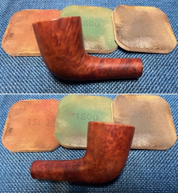 I polished the briar with micromesh sanding pads – dry sanding with 1500-12000 grit pads. I wiped it down after each sanding pad with a damp cloth to remove the sanding debris on the surface.