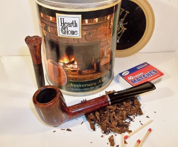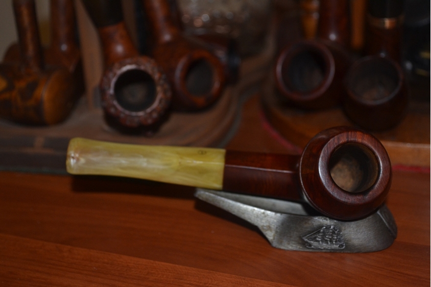 Tonight and tomorrow (Wednesday and Thursday), before the monthly official meeting of my pipe club at the local Moose Lodge, I will attempt to power through as many of the easier prospects as possible from my recent online purchase spree. The highlights include what I believe is a Comoy’s Smooth Bent Satin Matt Short Brandy #1770 (Made in London in a circle); a Kaywoodie Silhouette Bent Rusticated Squat Apple; a Kaywoodie Smooth Bent Signet Billiard; an Ehrlich Rusticated Straight Billiard; a LHS Park Lane Smooth Straight Poker; a Reinhard’s Smooth Straight Billiard; an Amadeus Greek Bent Billiard; a Parker Tall Tan Straight Poker; a unique small Town and Country Round-Bottom Straight Squat Rhodesian; a no-name Gourd Calabash Meerschaum Lined; a trio of old Missouri Meerschaum corncobs…and another KBB Yello-Bole, this one a Straight Four-Panel, also with the KBB in a clover but a yellow circle on the stem.