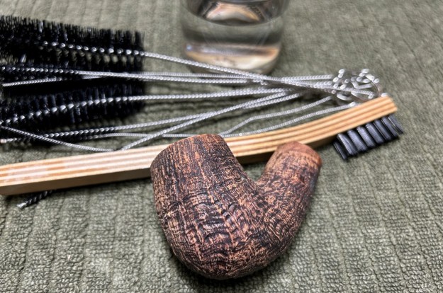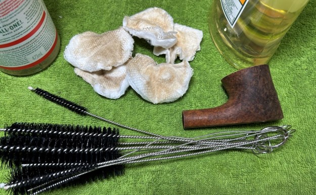 To tidy up the briar, I wiped down the outside, using a solution of a pH-neutral detergent and some distilled water, with cotton rounds. I also used a toothbrush in the crevices. This did a good job of cleaning any latent dirt on the surface of the briar. The last step of the cleaning process was to scour the inside of the stummel with the same mild detergent and tube brushes. While cleaning, I noticed the number 75 on the bottom of the bowl. I assume this is some sort of shape number. If you have more information, please let me know in the comments below!