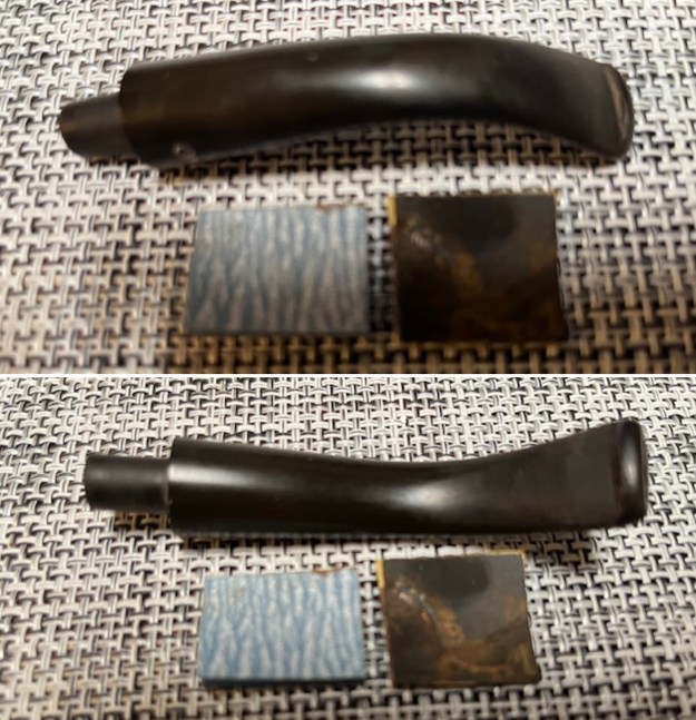 I knew that I was dealing with a pipe made 1949-c1957 due to the stamping on the shank and a natural finish. It has the “P” stamp on the stem side and a P-lip mouthpiece. Now it was time to work on the pipe.