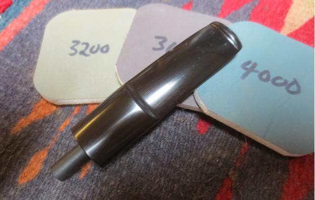 I polished the stem with micromesh sanding pads – wet sanding with 1500-2400 grit pads and dry sanding with 3200-12000 grit pads. I wiped the stem down after each pad with a damp cloth to remove the sanding dust. I used the Before & After Pipe Polish to remove the small minute scratches left in the vulcanite. I finished by wiping the stem down with a final coat of Obsidian Oil and set it aside to dry.