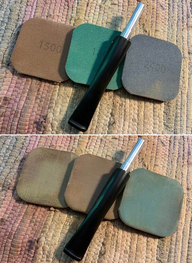 I polished the stem with micromesh sanding pads – dry sanding with 1500-12000 grit pads. I wiped the stem down after each sanding pad with Obsidian Oil. I polished the stem with Before & After Pipe Stem Polish – both Fine and Extra Fine. I gave it a coat of Obsidian Pipe Stem Oil. It works to protect the stem from oxidizing. I set it aside to dry.
