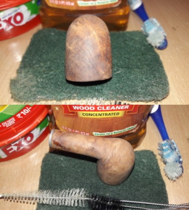 Abha, my wife, reamed out the complete cake and further smoothed out the chamber walls with a folded piece of 220 grit sand paper and scrapped out the entire lava overflow from over the rim top surface. She further cleaned out the internals of the shank with pipe cleaners and alcohol and cotton buds. She followed the internal cleaning of the shank with external cleaning of the stummel using Murphy’s Oil soap and hard bristled tooth brush and dried it with paper napkins and cotton cloth.