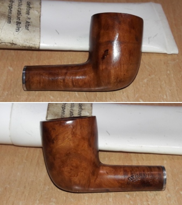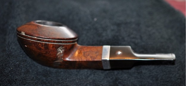 The grade “STERNIES”, as seen on the pipe on my work table, finds no mention in the 8 grades of pipe that have been listed in the 1944 catalogue. Also the fact that the stem bears no logo of two dots is a mystery (or has it been completely buffed off?). That fact apart, the stamping “IMPORTED BRIAR” points to post WW II production.