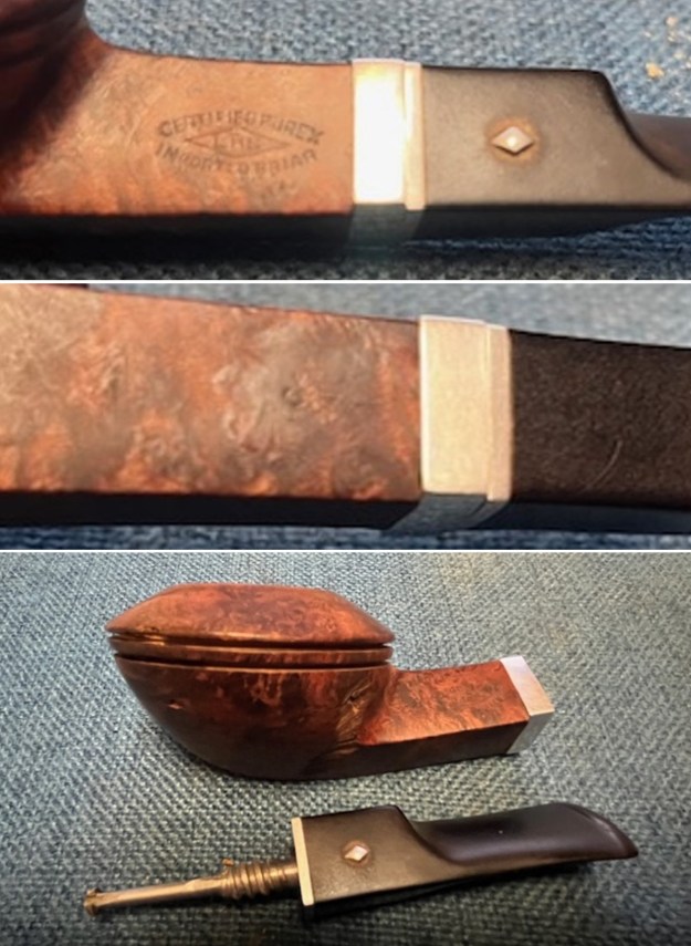 Pre-war pipes were stamped Real Briar Root, or Briar Root. Some war time pipes were made from domestic briar or “American” briar and were void of any briar stampings. Many American pipe makers lost their overseas supply of Mediterranean briar shortly before and during the war. Post war pipes were stamped Imported Briar to assure customers that they were buying premium briar once again.