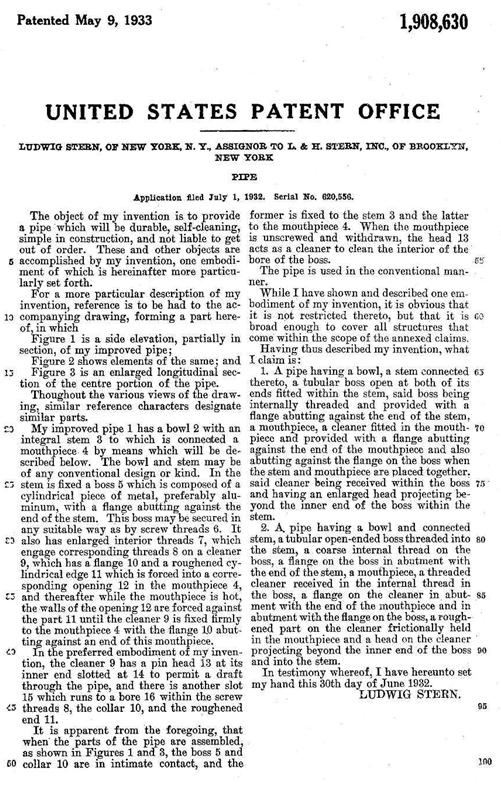However, awaiting Steve’s reply did not hinder me from proceeding with certain steps I knew, such as the fact that the stinger extension of the tenon should come off. Thinking of that, I tried heating the entire aluminum tenon with the flame of a Bic, careful not to touch the shank opening beyond the part of the tenon Ludwig Stern referred to as the flange [see p. 1, Fig. 2, part 10 of the Patent]. Unfortunately, the tenon still would not budge. Even the stinger [illustrated as a whole as part 9, with parts 13, 14 and 15 forming its length and pushing into part 8] seemed to form a single piece. I was aware this would be odd, if not unprecedented, but after four attempts, I swear it would not come off.