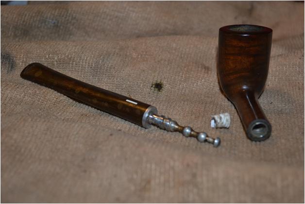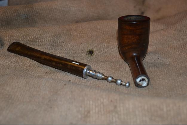 Before doing that, I continued where I had left off, cleaning the tenon and stinger inside and out, including the corroded threads that screwed into the bit, using a small square piece of cotton cloth soaked with Everclear and bristly cleaners that passed through the airways. To be done with it, I also ran a pipe cleaner with alcohol through the air hole of the bit, and when it came out filthy, recalled Steve’s words in his blog that this sort of pipe often needs considerable cleaning of the shank and bit. Quite a few cleaners later, I had the mess under control for the time. Known to my dad for having “a mind like a steel trap” and to my friends as being on the stubborn – or, as I prefer to think, confident side – I was by whatever label loathe to surrender to any challenge.