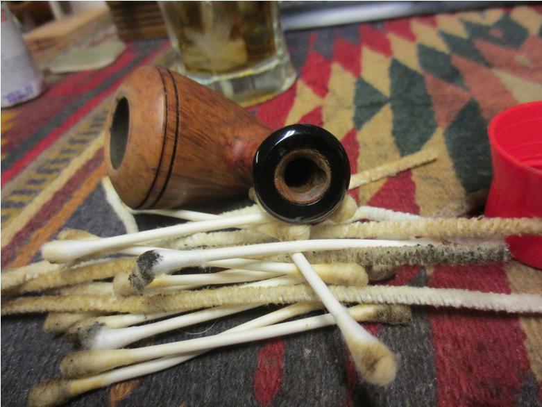 I cleaned out the mortise and airway in the shank as well as the airway in the newly chosen stem with pipe cleaners, cotton swabs and alcohol. It was a dirty bowl and shank.