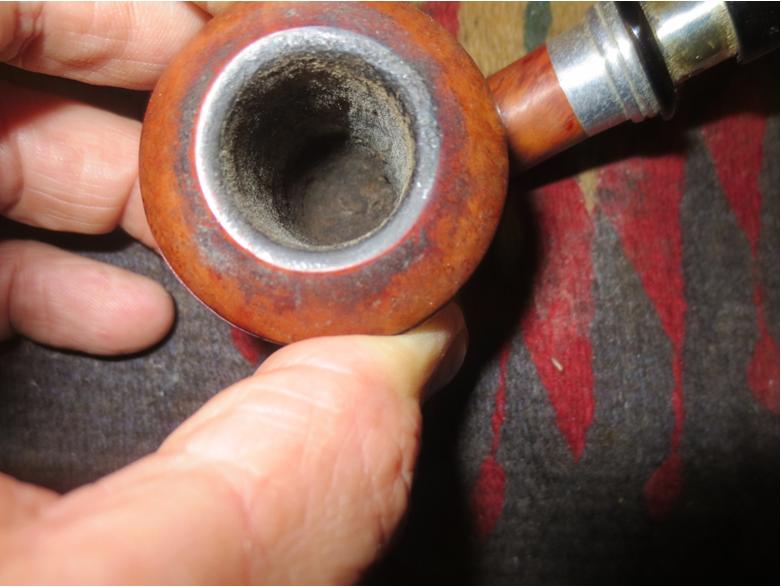 I took photos of the rim top and stem to show the general condition of the pipe. The bowl is heavily caked and the rim top and edges have a thick lava overflow. The photos of the stem show the damage and broken part of the stem. It really is a mess and the acrylic is not repairable.