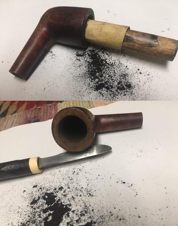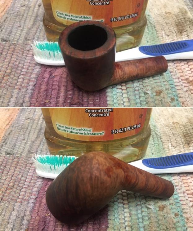 I wiped the bowl exterior down with alcohol on paper towels to remove the grime and then scrubbed the interior of the bowl shank and stem with pipe cleaners, cotton swabs and alcohol to remove the tars and oils.