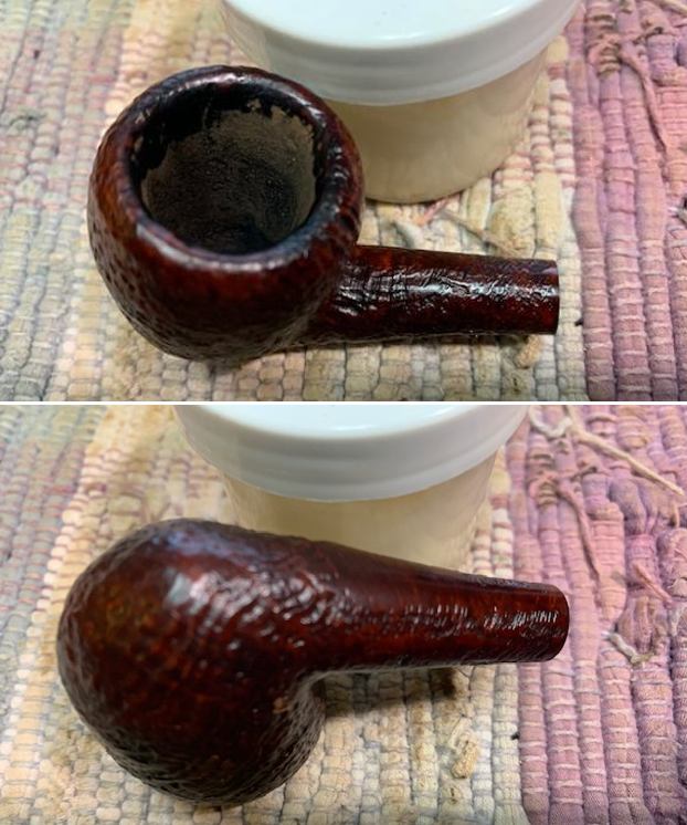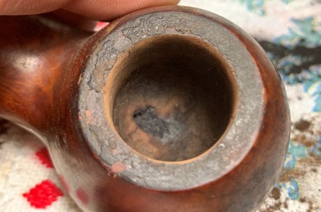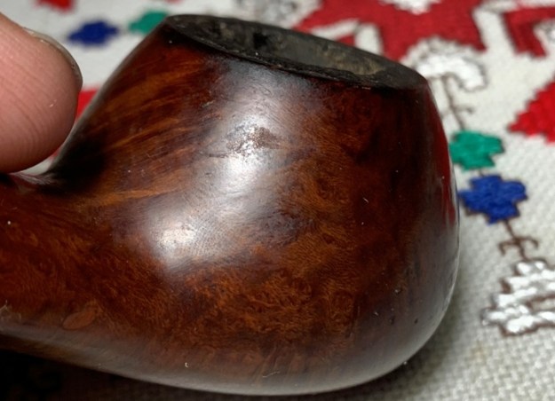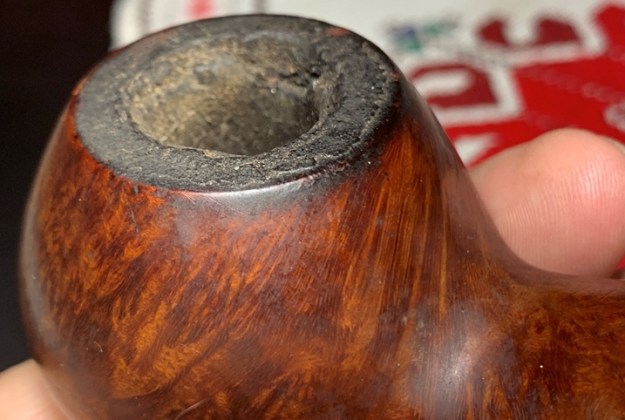 The after section of the rim reveals the darkening of the briar that has been scorched through the lighting practices of the former steward.